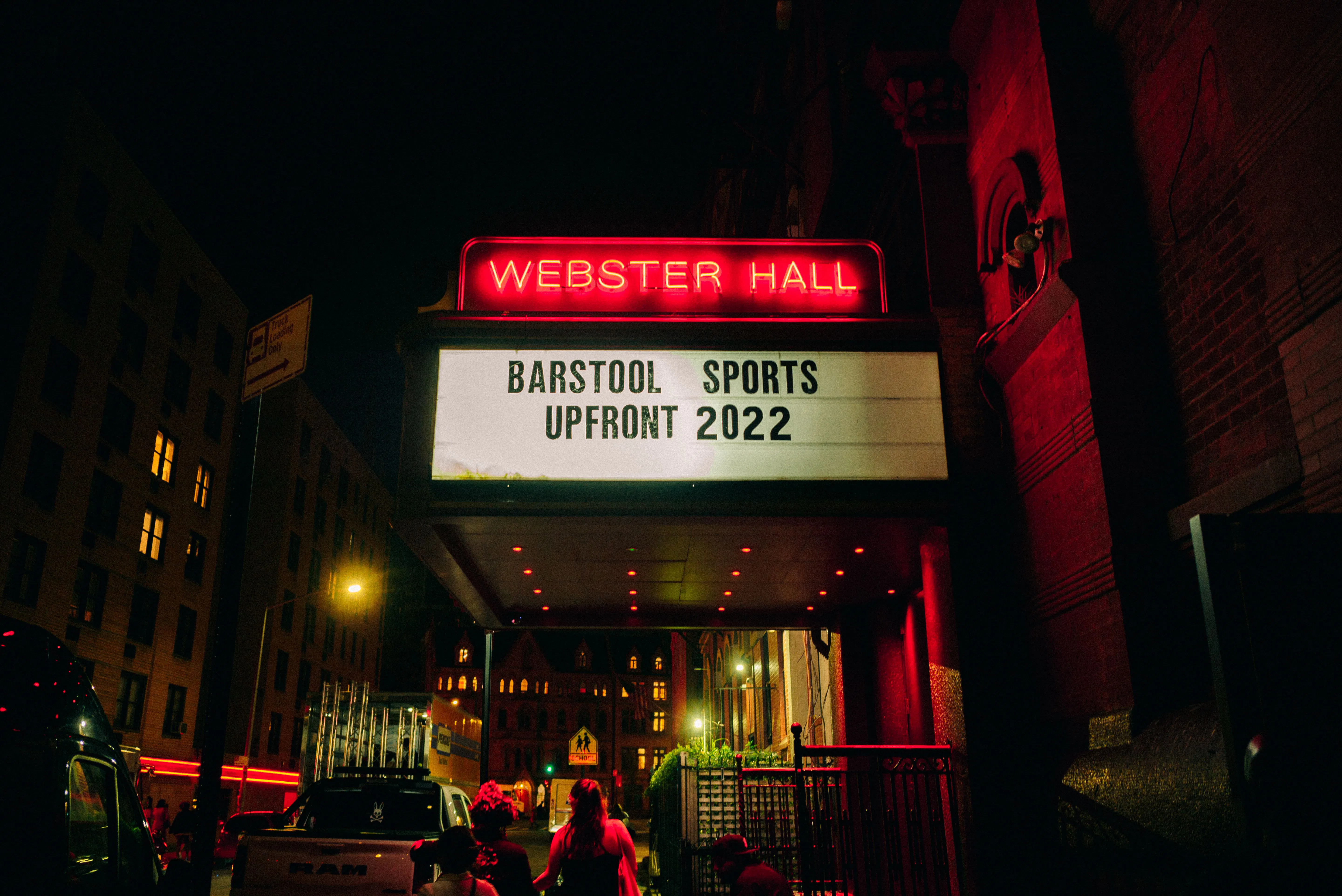 We led event production, fabrication management, stage buildout, and atmospheric design installation for the 2022 Barstool Sports Upfront at Webster Hall.