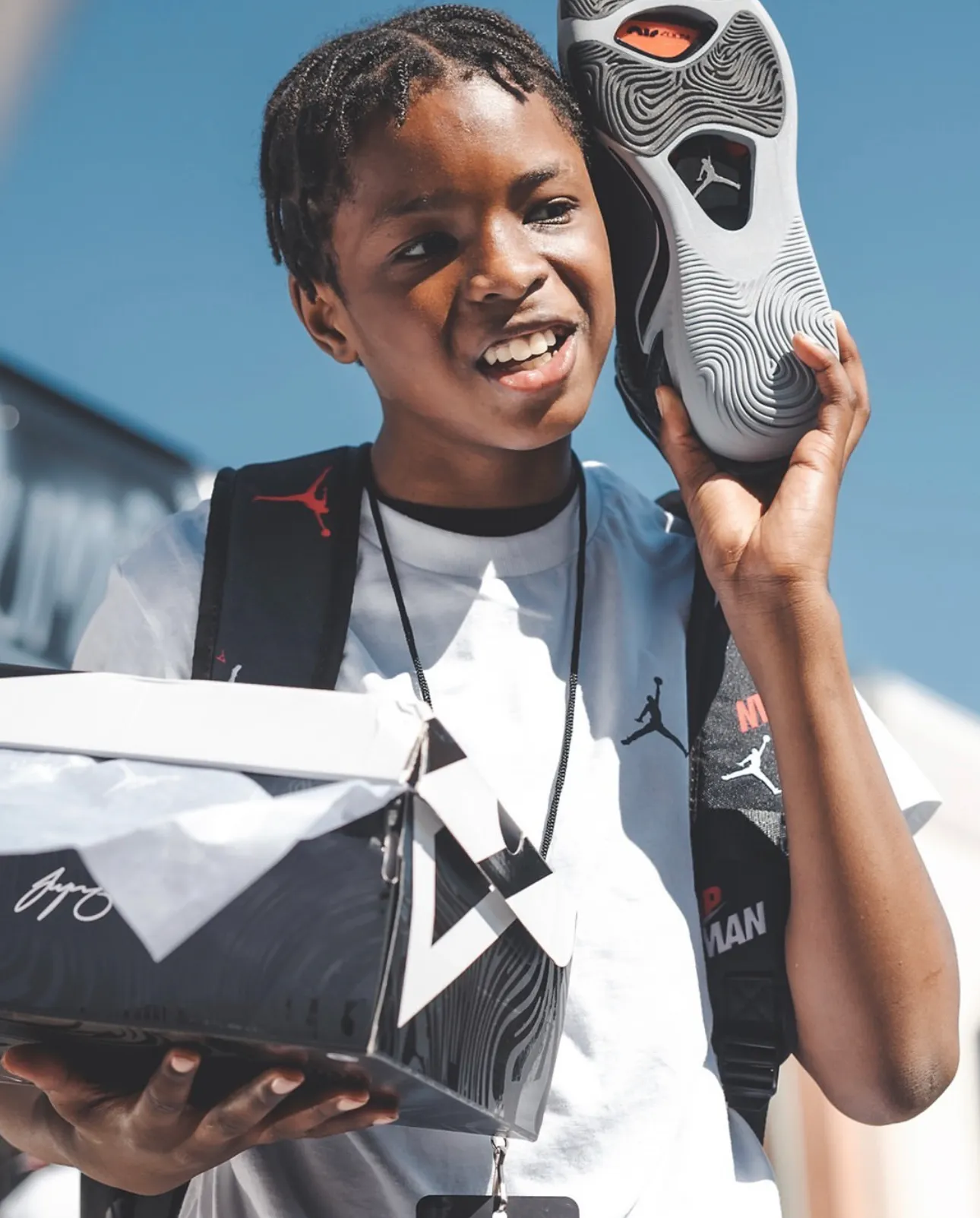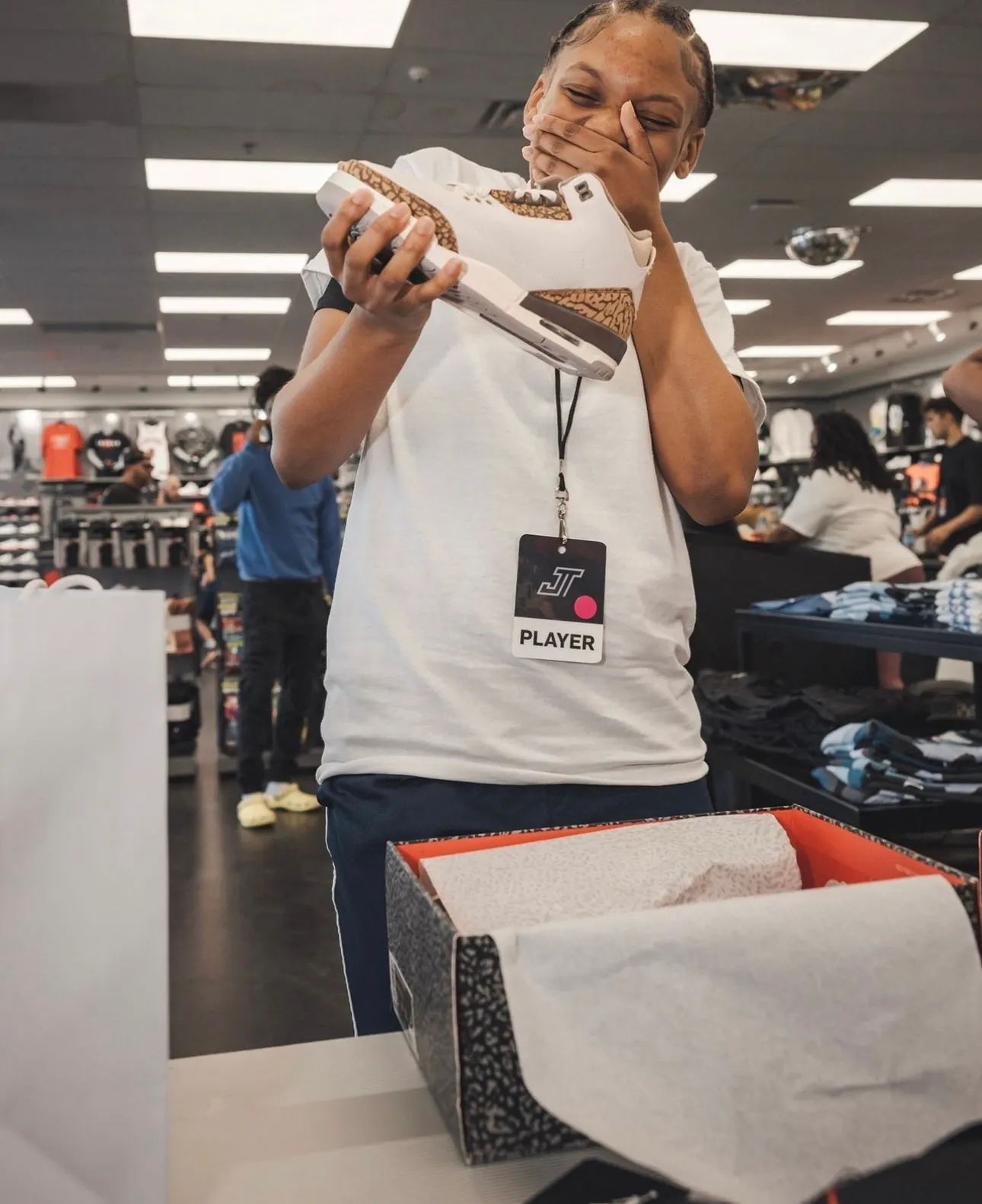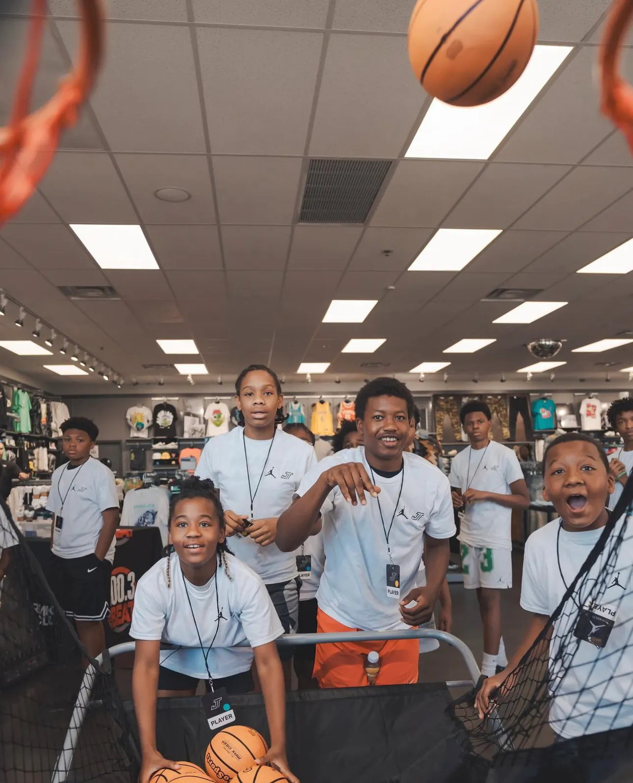 Upon entering the store, the kids were greeted by a cheer tunnel, and sat on bleachers where they were warmed up by our host before being surprised by Jayson himself - who shared a few words of encouragement before gifting them with a bag full of back to school clothes, 2 pairs of kicks, and a JT chain.
